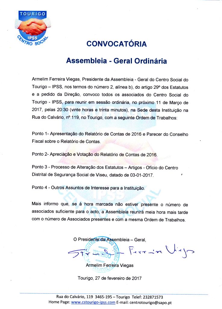 Convocatória Assembleia Geral – 11 março de 2017