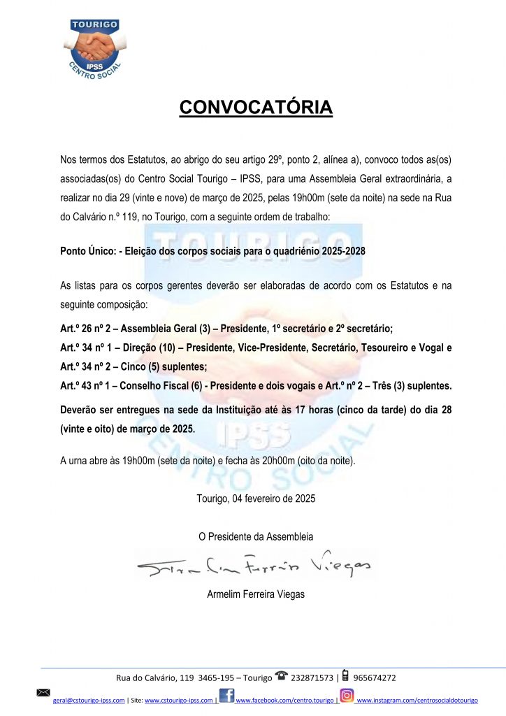 Convocatória Assembleia Geral – Eleição Orgãos Sociais 2025-2028 – 29 março 2025 12 Março, 2025Destaques, Notíciascstourigo