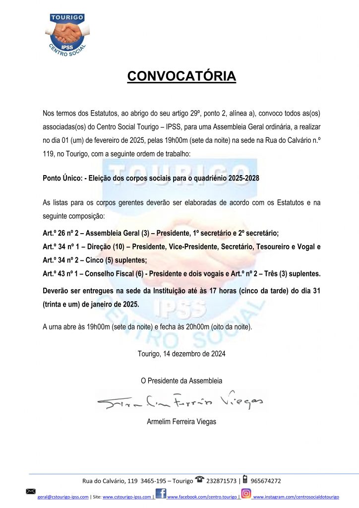 Convocatória Assembleia Geral – Eleição Orgãos Sociais 2025-2028 16 Dezembro, 2024Destaques, Notíciascstourigo
