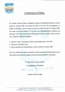 Convocatória Assembleia Geral Ordinária – 10 de novembro 2018